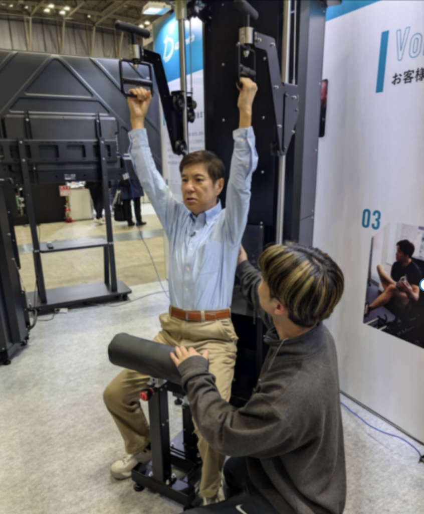今回が初出展となる4D-Stretchですが、会場ではトレーニングマシンの実機を展示し、ご来場いただいた方々に実際に体験していただきました。